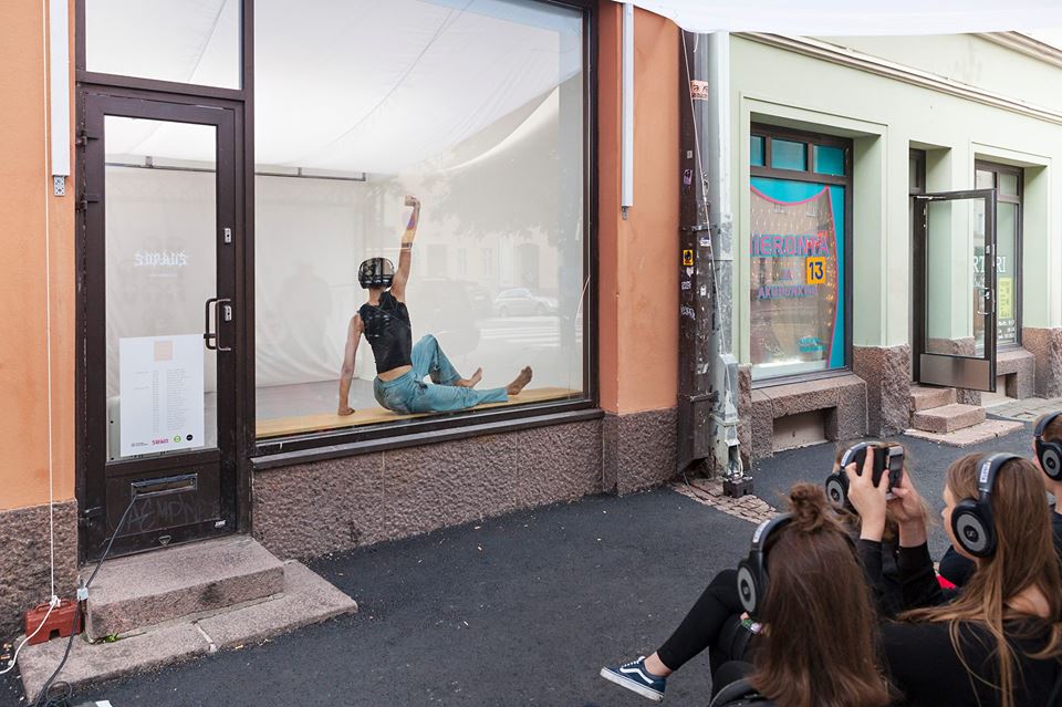 Scenen är ett skyltfönster. Varje dansare tar på sig hörlurar, väljer sin egen musik och stänger ögonen. En timme senare tar nästa dansare över. Publiken ute på gatan får också lurar, om de vill. I dem hör de samma musik som dansaren.