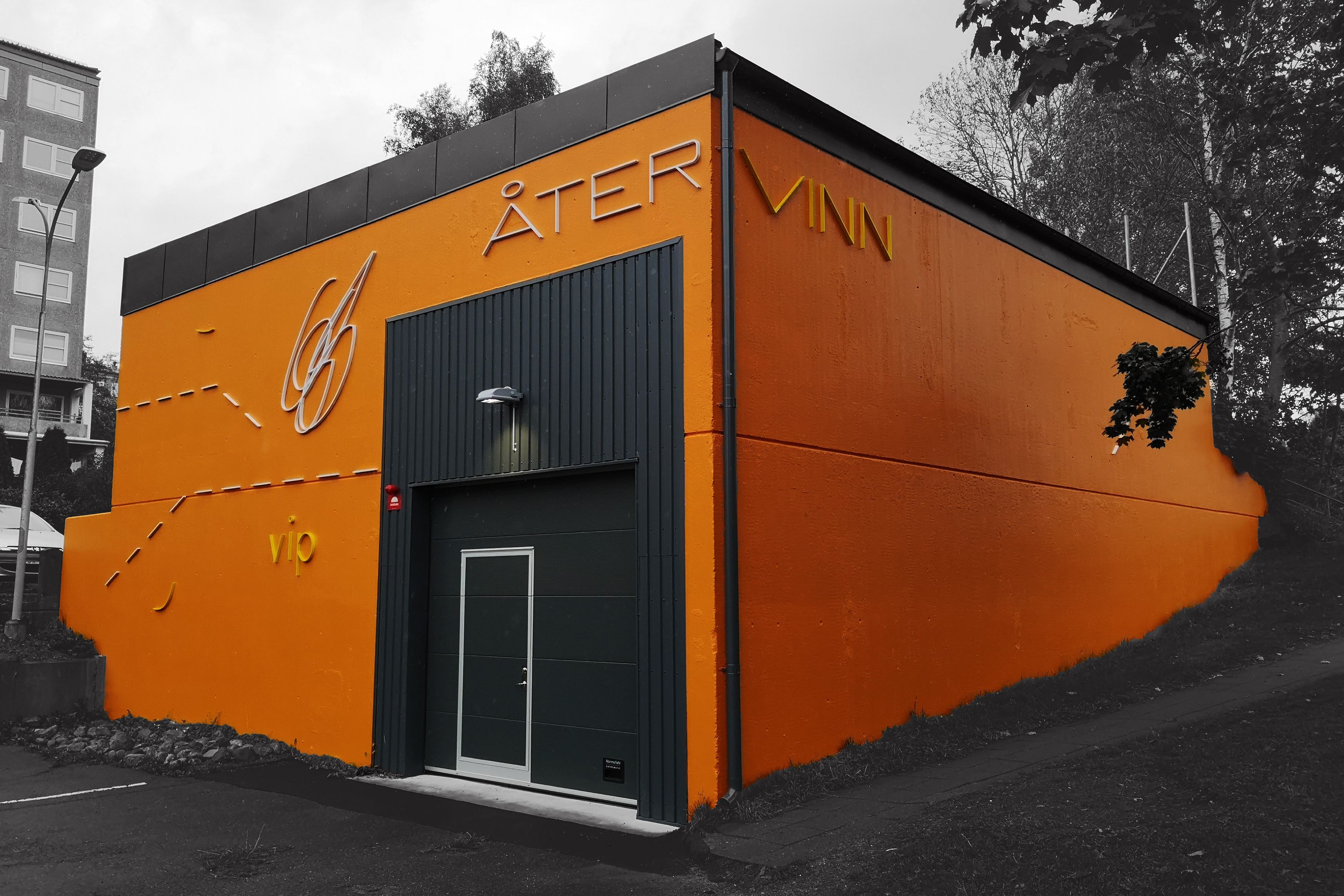 Ur konstnärens skissförslag: För att skapa ett rum som får de boende att känna en lust att använda huset, något som är deras; fästs en serie motiv i futuristisk minimal stil – neonskyltar – på fasaden. De blinkar i intervaller som en animation. Streckade linjer, krumelurer, en uppdelad text som läser ”ÅTER VINN” på två hörn av betongbyggnaden.¨