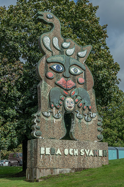 Beda och Svanen är en av tre humoristiska betongskulpturer i stort format som binder samman området runt Lövgärdesvägen i Angered.