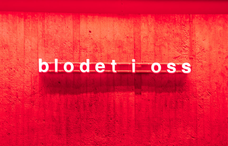 Med små medel har konstnären skapat en effektfull upplevelse för de fotgängare, cyklister och bilister som passerar genom tunneln. Den intensivt lysande blodröda färgen förvandlar en vanligen ganska död och ogästvänlig plats, där bilmotorernas ljud studsar mot den grå betongen och där man som fotgängare helst vill passera så fort som möjligt. När mörkret lagt sig träder man nu istället in i detta omslutande röda ljus och ser den vita texten ”blodet i oss” på den motsatta väggen.