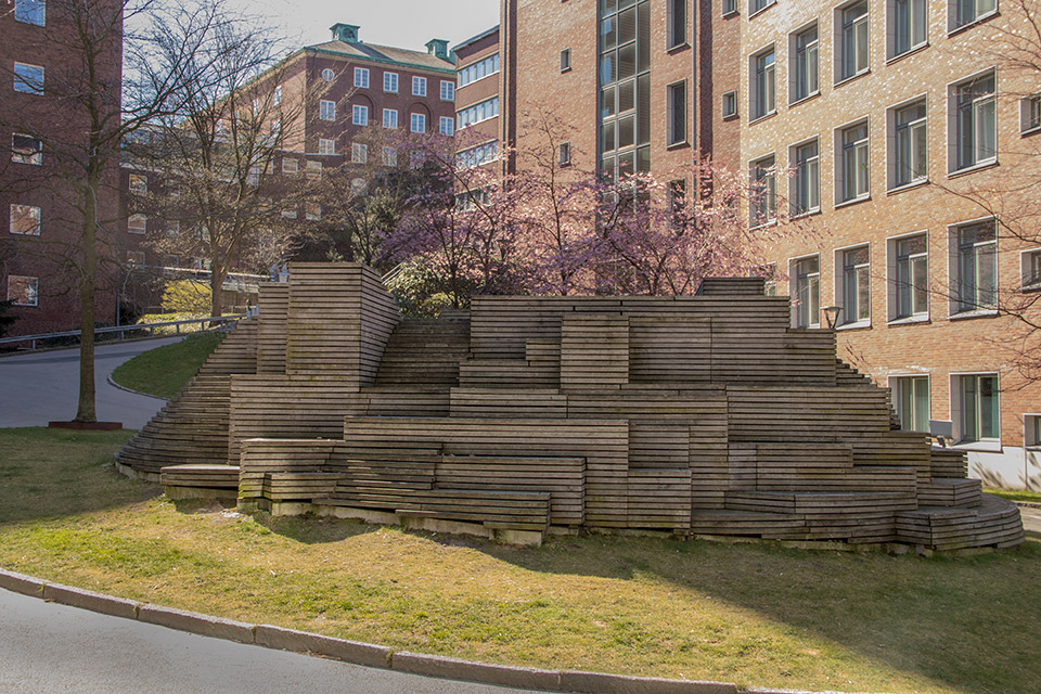 Inne på området som tidigare hörde till Vasa sjukhus och idag är en del av Chalmers Tekniska högskola står skulpturen som inspirerats av skärgårdsklippor. På de olika nivåerna av grånad ek finns plats för allt från meditation och läsning till möten och lek.