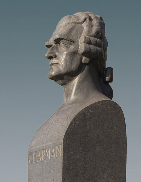 Porträttet av Fredrik Henrik af Chapman (1721-1808) är det som placerades tidigast och kom på plats redan 1921. Invigningen hölls den 9 september vilket var på 200-årsdagen av Chapmans födelse.