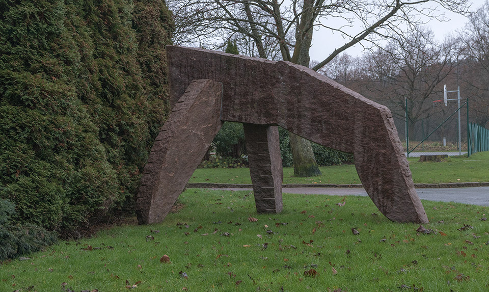 Den ca fyra ton tunga granitskulpturen placerades i början på 2000-talet på en gräsyta vid Beväringsgatan. Där stod den sedan fram till 2019 då den på grund av nybyggnation i området flyttades till sin nya placering på andra sidan av huset. I samband med flytten fick skulpturen en välbehövlig rengöring.