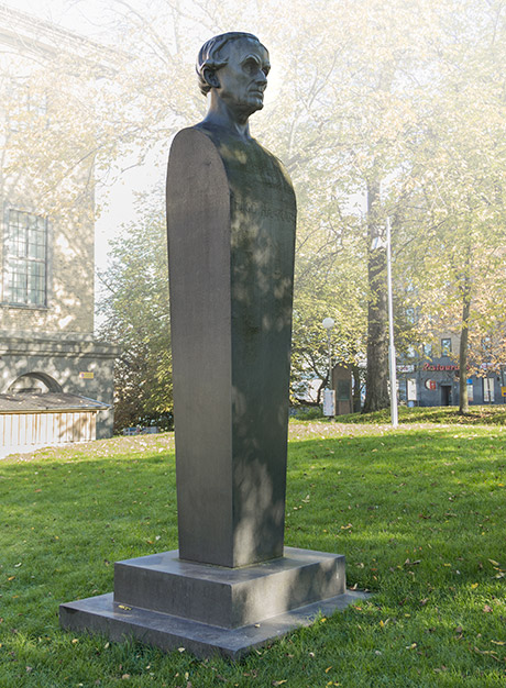 I parken vid Sjöfartsmuseet står fem stycken porträtt av personer som på olika sätt bidragit till sjöfartens utveckling i Göteborg.