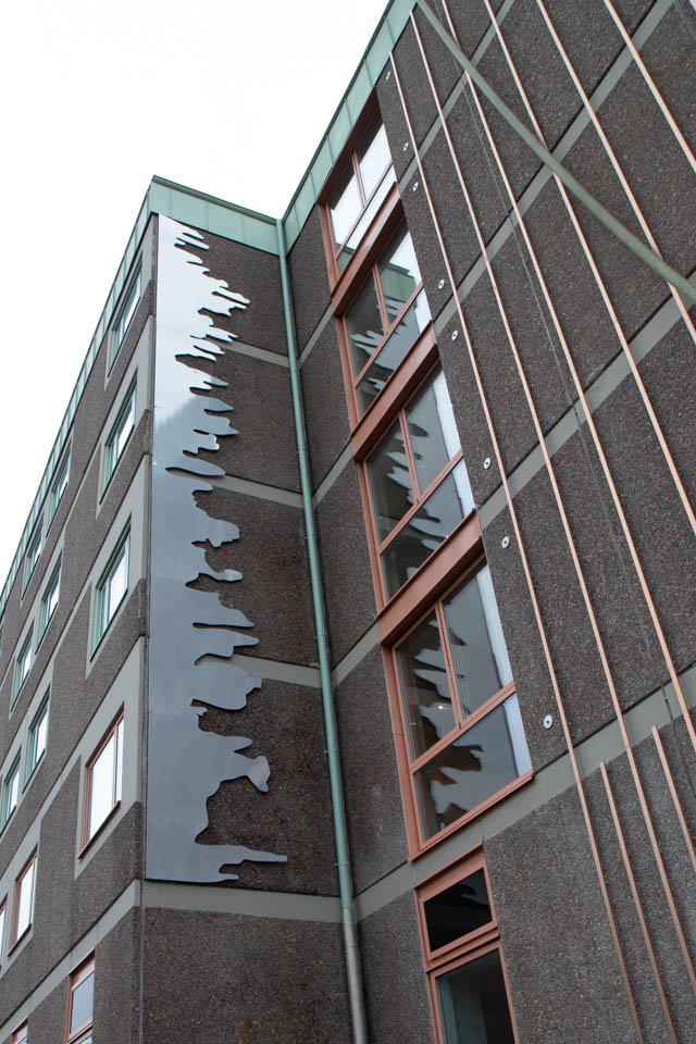 På det stora 60-talshuset på Kustgatan syns olika ljusreflekterande former i metall, som alla anspelar på vårt förhållningssätt till havet.