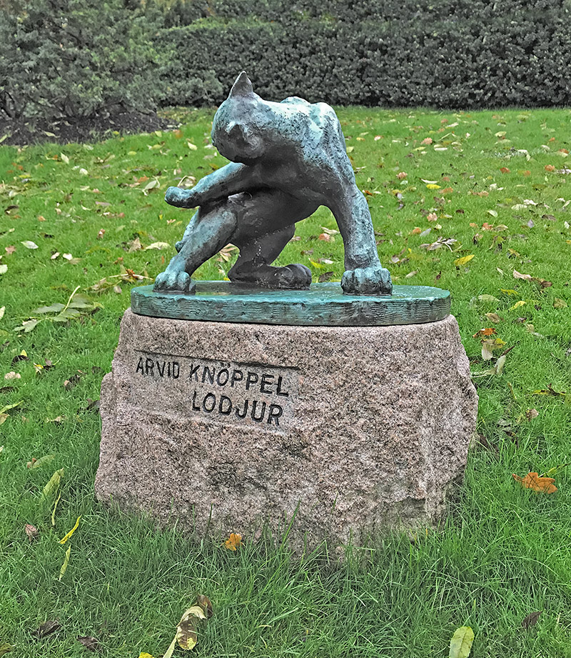 På gräsmattan strax innanför Lisebergs huvudentré står några skulpturer, varav Lodjur är den enda som föreställer ett djur.
