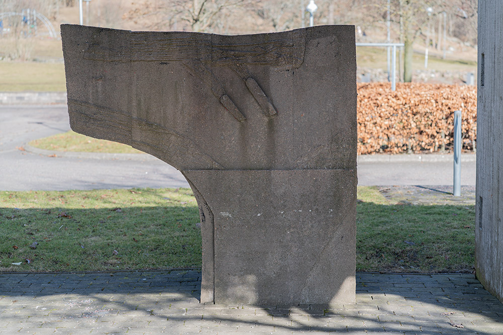 Längs den långa pergolan vid Skolspåret i Hjällbo tar hela 18 konstverk plats. Nummer två i ordningen, sett från Hjällbo centrum, är Bror Perssons abstrakta skulptur.
