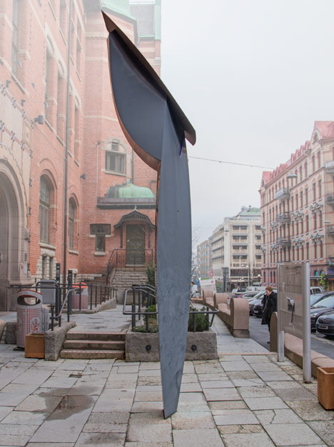 Gun Gordillos ”Plante Noir” (svart växt) står sedan 1993 framför entrén till Högskolan för design och konsthantverk.