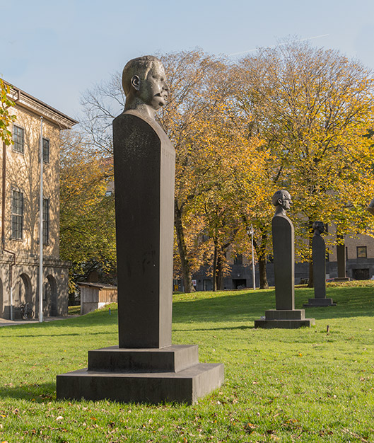 I parken vid Sjöfartsmuseet står fem stycken porträtt av personer som på olika sätt bidragit till sjöfartens utveckling i Göteborg.