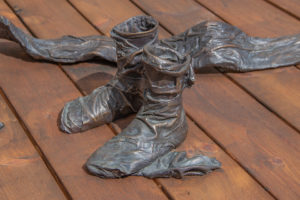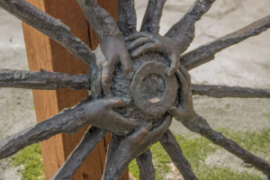 De fyra skulpturerna i verket står utplacerade på och runt om platån, och föreställer ett par skor lindade av tygremsor, en siluett av ett hus eller ett hem, en bänk med händer som knoppar, och ett vagnshjul. När verket flyttas till sin permanenta plats kommer hjulet att vara lutat mot parkens äldsta träd. Ytterligare ett litet blommande träd ska placeras i mitten av platån – en symbol för framtiden, eller kanske ett försök till förlåt. Platsen är nämligen inte slumpmässigt vald; förut fanns en romsk bosättning i parken, som drevs bort.