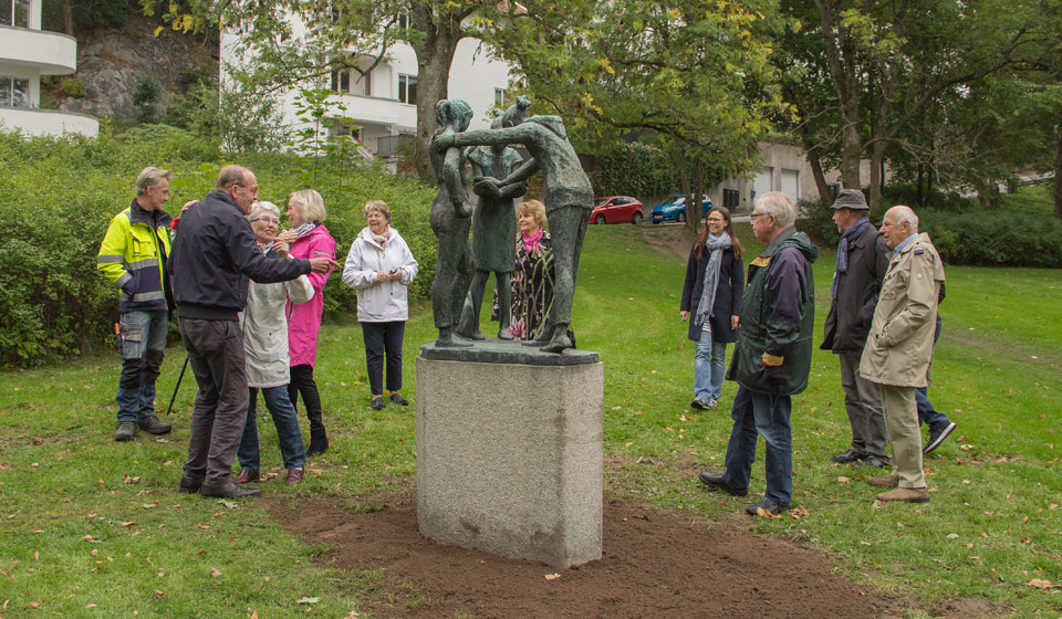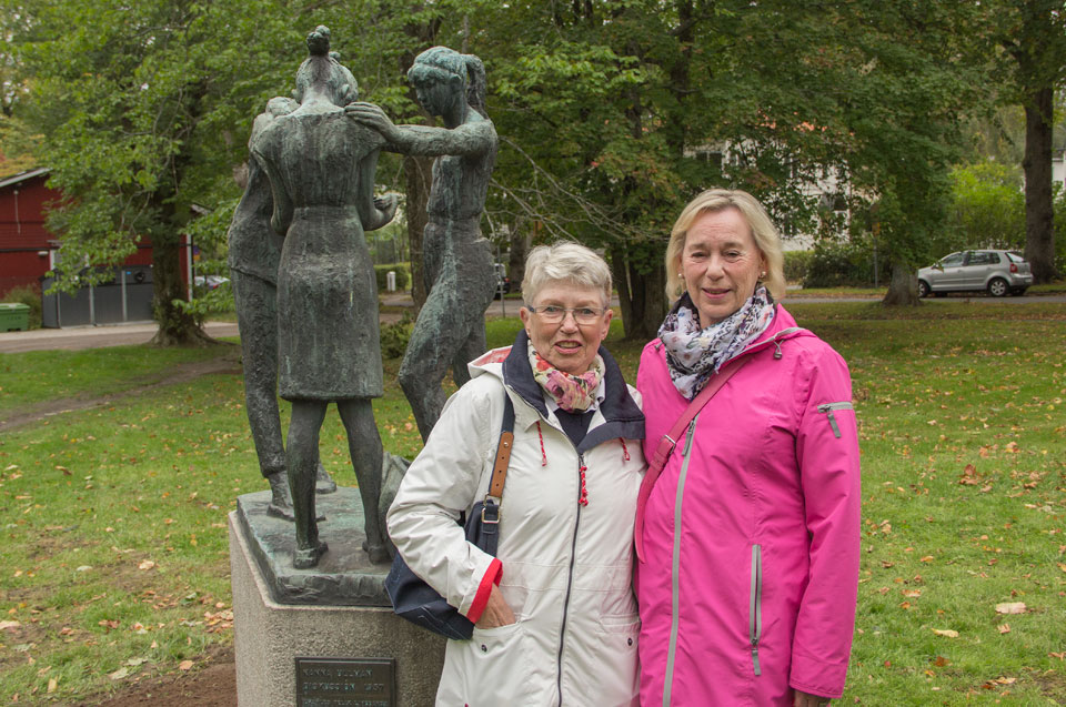 På plats, denna lite höstkyliga dag, fanns två av modellerna som kunde peka ut sig själva i skulpturen. Anna är den som vänder ryggen till i bilden ovan och Marianne är flickan till höger. Den tredje flickan som stod modell var Barbro Åvall som tyvärr inte kunde närvara vid denna nyinvigning.
