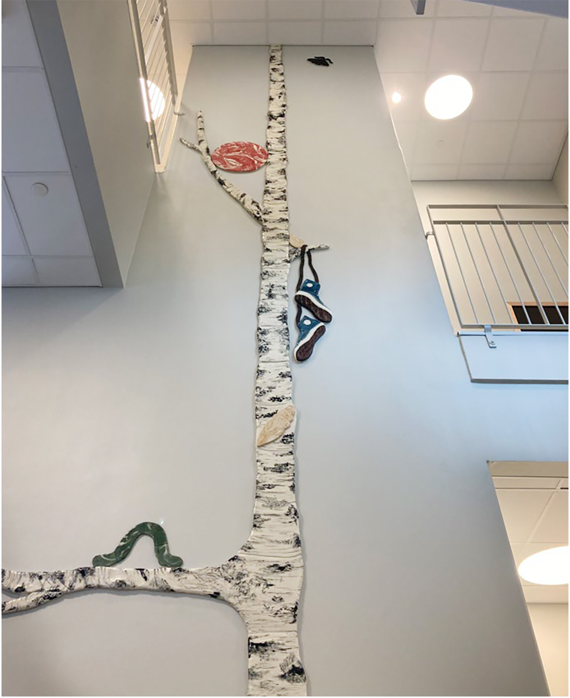 Gestaltning inomhus i tre plan, Torslandaskolan. Finansiär och processledare genom enprocentregeln: stadsfastighetsförvaltningen.