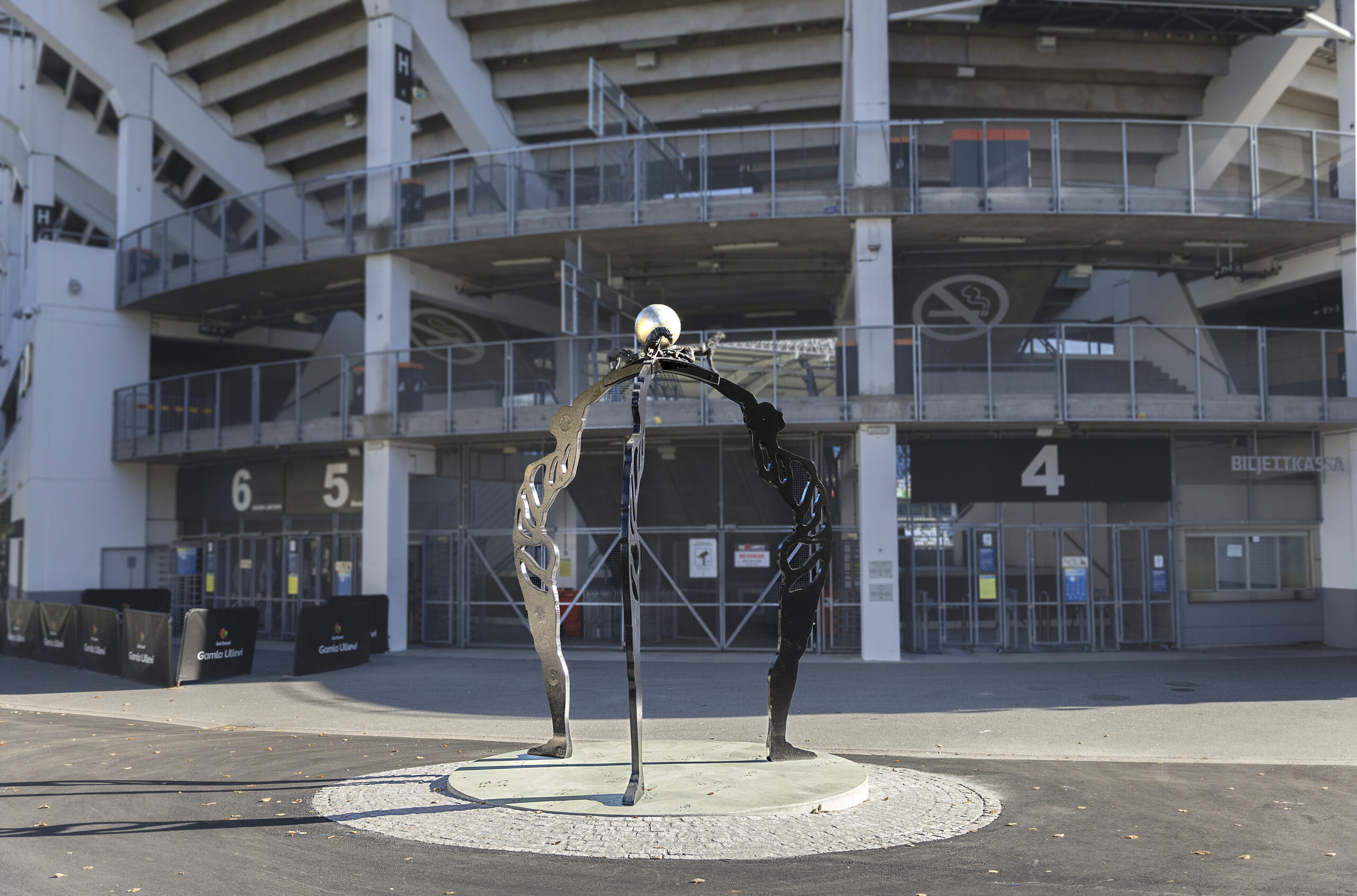 Utanför Gamla Ullevi syns siluetter av tre kvinnliga fotbollsspelare, gjutna i järn och drygt tre meter höga. De sträcker armarna uppåt, mot en skimrande boll av brons. Bollen vaktas av tre mindre figurer som tycks bekämpa motvindar från flera håll.