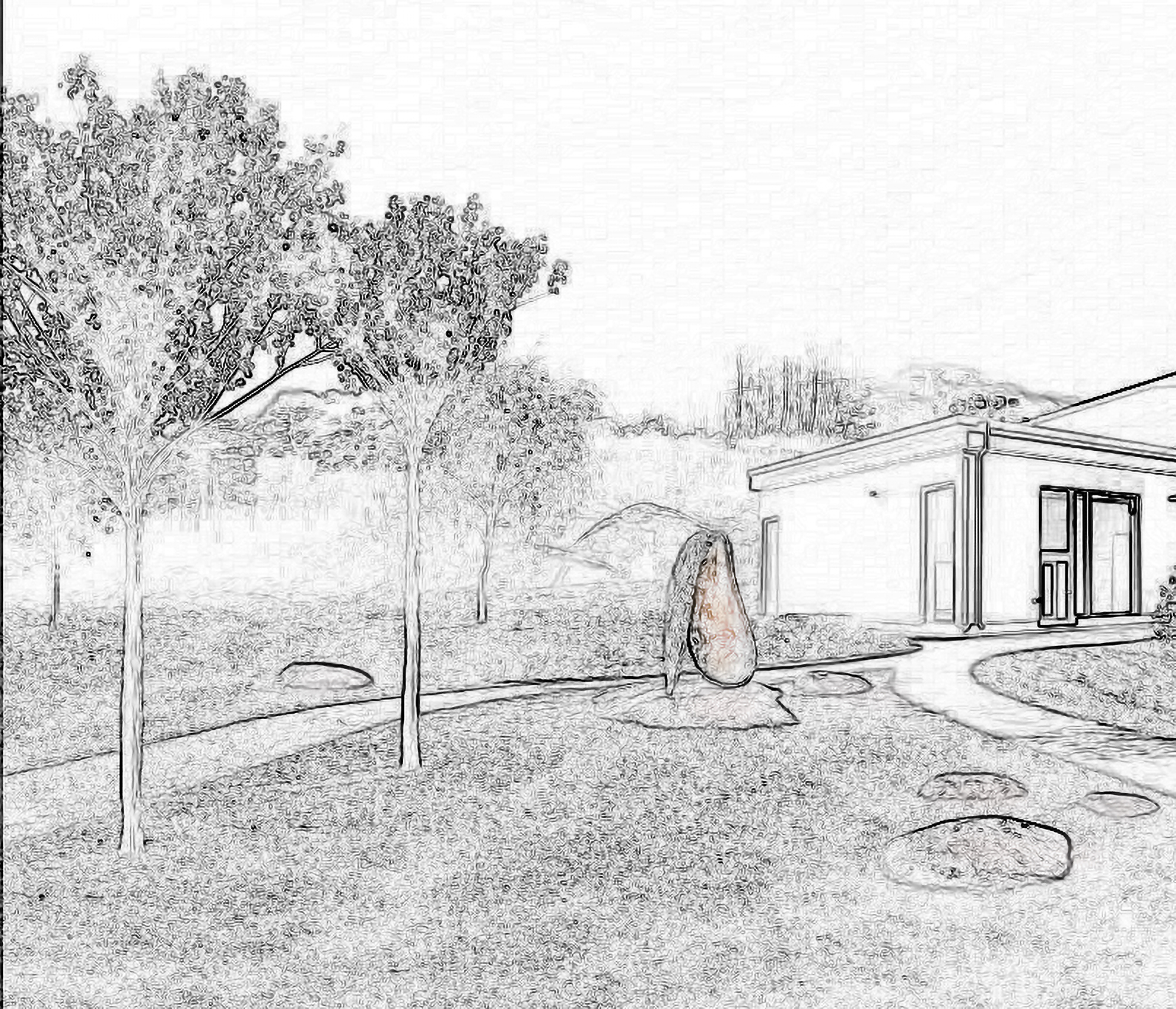 – Den nya simhallens långsträckta lätta träbyggnad gav mig associationer till japansk traditionell arkitektur. Vissa spår av den tanken har jag tagit med mig i gestaltningsförslaget: naturelementen i parken kan påminna om en zenträdgård och gestaltningarna i fönstren är naturligt uppdelade i paneler likt äldre japanska tuschmålningar, säger Anna Ekman.