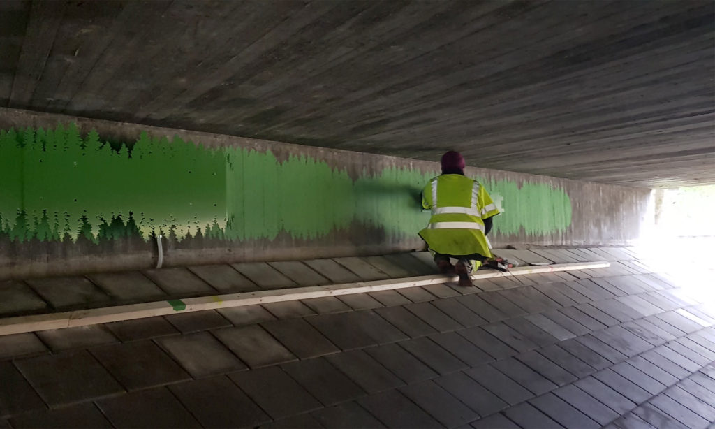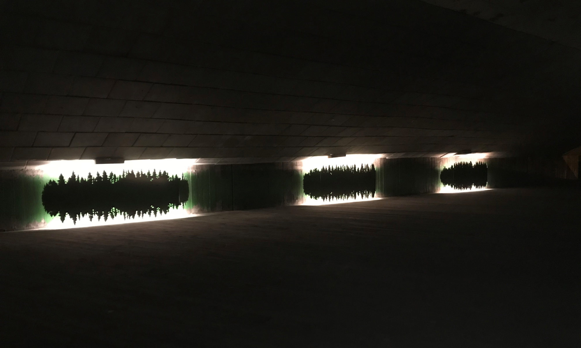Konstnären Pia Männikkös konstverk ”Forest Sounds”, som tagits fram i samarbete med ljusdesigners från White, består av siluetter föreställande både ljudvågor och skog med reflekterande vatten. Tillsammans med ljud och ljus skapas en stämningsfull installation med ambitionen att gångtunneln vid Fjäderharvsgatan i Angered ska bli en tryggare och mer trivsam plats för alla.